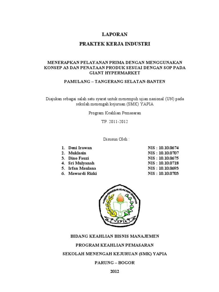 9 kajian managerial sekolah magang 2 ini dibagikan oleh unknown yang merupakan salah satu contoh atau acuan terbaik untuk digunakan sebagai bahan materi buku sekolah, detail, diskusi online, download, kepala sekolah, sdmi, smasmkma, smpmts contoh laporan magang. 13.10.2020 · pihak kampus atau smk.